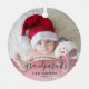 Help them celebrate their first grandchild with this beautiful modern keepsake ornament. The off-black text reads "Our first Christmas as grandparents," with the word "grandparents" in elegant handwriting script with flourishes before and after. Easily replace the sample image with your favourite photo of the new baby, and add his or her name and the year. A white gradient filter helps make the text pop.