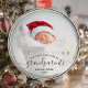 Help them celebrate their first grandchild with this beautiful modern keepsake ornament. The off-black text reads "Our first Christmas as grandparents," with the word "grandparents" in elegant handwriting script with flourishes before and after. Easily replace the sample image with your favorite photo of the new baby, and add his or her name and the year. A white gradient filter helps make the text pop.