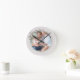 Photo clock with custom text which you can personalize for anyone or any occasion. The photo template is set up for you to add your picture, which is displayed in round shape. This elegant and delicate design has a floral photo frame with purple wild flowers and greenery. If you have any difficulty with picture placement, you could try cropping your photo to a square before uploading.