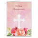 Wish your grandparents a Happy Easter with this beautiful watercolor look flower background. A cross is centred with white rays. Send them a religious blessing on Easter.