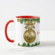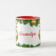 Grandpa's ornate Christmas cup with golden ornament decoration, red trim.