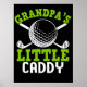 This charming golf-themed illustration is perfect for a proud grandfather and his grandchild. The top text "GRANDPA'S" is displayed in a vibrant, slightly distressed green. A large golf ball is prominently featured in the centre, with two crossed golf clubs behind it, all in white. Below the golf ball, "LITTLE" is in a matching green, followed by "CADDY" in white. The overall design is clean and bold against a solid black background, celebrating the special bond forged on the golf course.