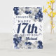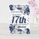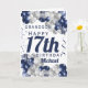 A gorgeous navy and silver balloon happy 17th birthday card. This fabulous design is the perfect way to wish your grandson a happy 17th birthday (or any age!) Personalise with our own custom name and message. Blue coloured typography.