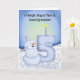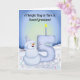 Celebrate your grandson's fifth birthday with this delightful winter illustration featuring a cheerful snowman proudly admiring the big snowy “5” he has just built. Snowballs are scattered around the base of the number, adding playful texture to the scene, while soft winter flowers bring a gentle, seasonal touch. The cozy colors and whimsical details make this design perfect for little ones who love winter magic.