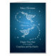 A Christmas card for your grandson and his family. Two doves of peace carrying olive branches. The doves are drawn with lots of Christmas symbols and snowflakes. The doves are flying in a blue sky full of stars. A wonderful Christmas card that will be welcome by your grandson.