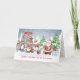 Greeting card for Grandson with Christmas images of Santa Claus, Snowman, Reindeer Rudolph, Penguin and Santa cat in winter snowy forest