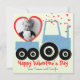 A cute Valentine's day personalised card for a little boy, featuring a tractor layered with a denim texture and a heart cutout that you can customise with a photo of your little guy. Also edit the "From" line. A great Valentine's Day card from mum and dad, grandma and grandpa, aunts, uncles, godmothers and godfathers etc.