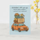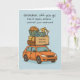 Packed to the roof and full of college dreams! This funny card for your grandson captures the chaos and excitement of heading off to school. Featuring a cartoon car overloaded with dorm supplies and a customisable sign on top for the college name, it’s a lighthearted way to send your love (and maybe a little reminder about laundry). A perfect card to mark the beginning of this new chapter.