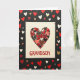 This greeting card features a cream square card set against a deep matte black background. Near the top, a large heart is formed from many tiny heart shapes layered together. The small hearts come in reds, pinks, black, and a few touches of gold and silver, with some glittery pieces and others showing patterns like gold dashes on black or a red-and-gold plaid. Below the heart, the text “GRANDSON” appears in raised red letters across the lower part of the cream card, making it clear who it’s for. Around the cream card on the black background, extra hearts are scattered in different sizes and colors like red, white, gold, and light brown. The mix of textures and thoughtful details makes it feel like a caring way to show affection, whether it’s from a grandparent or someone who wants to remind him he’s loved 🥰. It’s a simple, sweet design that says a lot without needing many words ❤️, and it’s a friendly way to share Valentine’s Day sentiments.