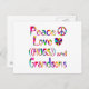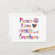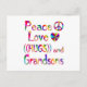 Share the love for your grandson with this colourful design with a peace sign, heart, and the words Peace Love Hugs and Grandsons.