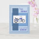 A blue motor cycle on an abstract blue background. The front says "Happy Birthday to my wonderful grandson". A great card for a grandson who is a motor bike enthusiast. The textures on the front of this card are printed.