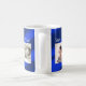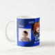 Personalised grandsons photo gift mug for grandparents, or parents, with four photo templates. Wide, painted blue stripes are the background for the boy's photos with a place for "Grandsons" or "Sons" or "Grandkids" text and a message beneath, such as "we love you Nana & Papa". Add each boy's (or child's) name above the photo. Use photos with the subject in the centre for best results. This mug will print as you see it in the preview. Changing the size may alter the design.