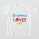 Granma Loves Me T-shirts, bodysuits, cards, bags, and other items with a blue, red, and yellow text design.