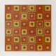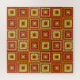 A pattern of granny squares in shades of red and yellow is a fun design for active senior citizens and their children.