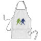 Grape Friends adult apron. A pair of grape bunches, one green and one purple, walk companionably hand-in-hand. The stem of the green bunch seems to be looking at the purple bunch. The purple grape stem eagerly returns the glance.