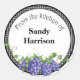 This grape jelly jar sticker design has from the kitchen of and allows a place to put your name. The grapes are surrounded by vines at the bottom and the circle is made up from chequered board in black and white.