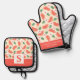 Grapefruit Citrus Floral Cute Summer Monogrammed Oven Mitt & Pot Holder Set