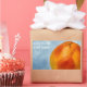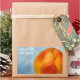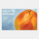 Grapefruit of bright orange colour. Textured blue background. Grapefruit symbolises abundance. Rectangular sticker for anyone. Customisable. You can change or delete the template text.