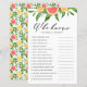 Who knows the mum best? Add this fun and playful baby shower game card to your event. It features watercolor grapefruits, oranges, greenery and baby's breath. Personalise this citrus baby shower game by adding your own questions. This grapefruit baby shower game is perfect for summer baby showers.