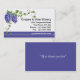 This business card has two sets of grapes with grapevines surrounding the design. I line of colour matching the grapes in on the bottom where may put your web site address or phone number. You can use the back for your slogan or other wording if needed.