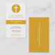 A contemporary, graphic look for any church or community/religious-based organisation. A simple cross knocks out within a golden yellow circle. A name is highlighted in the gold panel below. The back is solid colour with the option to add extra text such as a tagline or Scripture. Available in alternate colours with matching products.