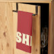 Graphic Dishes kitchen towel. Background colour and text can be customised