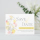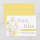 Graphic flower petals yellow grey save the date announcement
