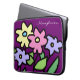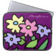 Stylised pink, blue and yellow flowers on a purple customisable background colour. Beautiful design for the girls