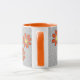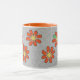 Cute graphic flowers on a neutral, grey background structure which resambles soft woven fabric. Mug details are set to orange - can be modified. Is this your favourite mug?