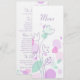 Double-sided simple Double-sided simple modern petal confetti style floral wedding reception dinner menu in purple, pink and mint green hues. Uniquely designed by Sarah Trett.