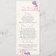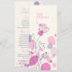 Double-sided simple modern petal confetti style floral wedding reception dinner menu in pretty pink, purple, plum and navy hues. Uniquely designed by Sarah Trett.