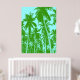 Bold and impressive graphic abstract palm trees posterized design. Green and blue.