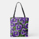This tote bag features beautiful, graphic, vibrant, purple pansies that stand out amongst the green leaves. Carry your essentials in style and make a statement with this tote with the perfect blend of fashion and function!