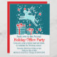 Simple stylised dashing reindeer office party flyer, perfect to inform employees of the Christmas party. Edit with your own office party details. Illustration and design by Sarah Trett.