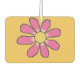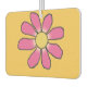 A sweet and romantic car air freshener. Graphic flower on yellow background. One side shows a pink flower, the other a blue flower. Background can be adjusted.