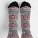 Fancy socks with graphics in muted shades of rust, teals, greys.