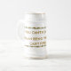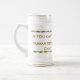 this is a 22oz. stein which is white/gold with a saying that is in gold letters.