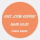 Funny Koffer sticker to never lose your luggage on Schiphol again. Find your own coffer or suitcase quickly with a stained orange sticker on it. Please adjust the text as desired.