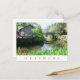 A beautiful view of a small bridge over the river Rothay in Grasmere in the Lake District in England printed on a postcard.