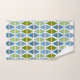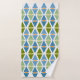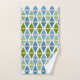 This towel set has a mid-century modern design of triangles whose bottoms have been curved, put in pairs with an oval between them. If you like the design but prefer different colours, message me.