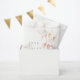 Modern simple sketched drawing and watercolor fall wedding favour bags in shades of red, burnt orange yellow and grey on on a off cream white.
