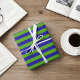 The customisable gift wrapping paper showcases a stunning blend of grass green and dark earth blue colours in a sleek and modern striped design. This versatile wrapping paper is perfect for Father’s Day, birthdays, retirements, housewarming gifts, or for anyone who loves the refreshing combination of blue and green tones.