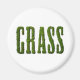 Magent with the word GRASS. The text is made from a photo of grass to make it look like it's cut from sod. Nice design for lawn care or mowing companies.