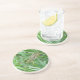 This pretty sandstone coaster features a detailed macro photograph of a small green grasshopper with brown mottled markings sitting on the grass. In the photograph you can see the detail of the jointed legs, long antennae and black and gold eyes of the grasshopper.