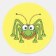 Round sticker shown with a cute cartoon grasshopper. Customise this item or buy as is.