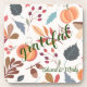 Entertain this holiday with a set of six quality made coasters. Modern Autumn print with "grateful" text ready to personalise; dimensions are 3.8"x3.8". Made with high-gloss plastic and a non-skid cork backing. Easily change the names using the Template provided. See "About This Product" at side for more information. HIGH reviews.