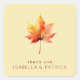 This wedding sticker features a beautifully illustrated autumn leaf with warm yellow, orange, and red hues set against a muted beige background. The design showcases a watercolor technique that gives the leaf a soft, blended appearance, creating an elegant and naturalistic look. Below the leaf, "thank you" is written in a simple serif font, adding a touch of formality to the overall composition. Perfect for expressing gratitude at your special event, this sticker captures the warmth and beauty of the fall season.