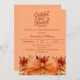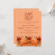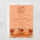 An atomic tangerine background colour. Decorated a large orange bow and fall flowers. Personalise and add the party details.