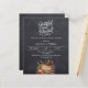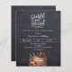 A faux rustic chalkboard background. Decorated with a wooden board with a old hat, pumpkin, corn. Personalise and add the party details.