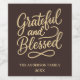A bistre, dark brown background. Beige, cream coloured text: Grateful and Blessed. Personalise and add your family name and year.